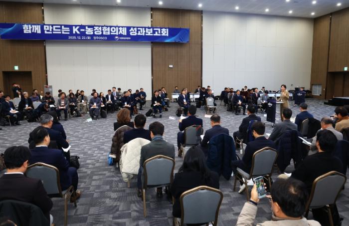 [종합뉴스채널, 홍희주기자] 농림축산식품부는 12월 22일 오후 청주오스코(OSCO)에서 '함께 만드는 K-농정협의체' 성과보고회를 개최했다. 이번 행사에는 K-농정협의체 공동대표인 송미령 농식품부 장관과 류진호 한국4-H청년농업인연합회 회장을 비롯한 협의체 위원 120여 명과 농어업농어촌특별위원회 김호 위원장을 포함한 관계자 30여 명 등 총 150여 명이 참석했다.