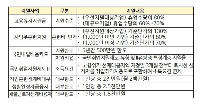 • 석유화학 밀집 지역 3개 지역 모두 고용안정 집중 지원