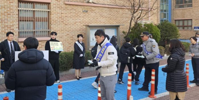이번 캠페인은 교통안전 의식 함양과 안전한 통학 환경 조성을 위해 마련됐으며, 횡단보도 앞 일시 정지, 어린이 보호구역 내 교통안전 수칙 준수 등을 홍보하고 통학로 내 위험 요소 점검 및 개선 방안을 논의했다.