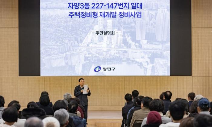 [종합뉴스채널, 박정혜기자] 광진구는 지난 7일 광진구청 대강당에서 자양동 227-147번지 일대 재개발사업 정비계획(안) 주민설명회를 개최했다.