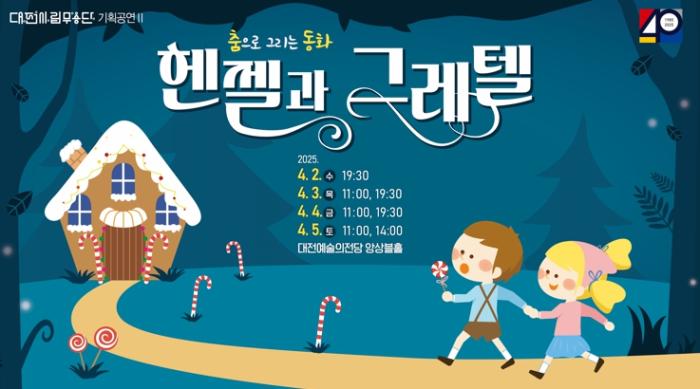 [종합뉴스채널, 발행인기자] 대전시립무용단이 선보이는 가족무용극‘춤으로 그리는 동화-헨젤과 그레텔’이 4월 2일부터 5일까지 총 4일간, 7회 공연으로 대전예술의전당 앙상블홀에서 펼쳐진다.