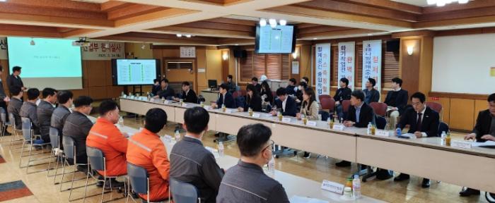 이후 여수시청에서 지자체, 유관기관과의 위기 상황 종합 보고와 질의응답을 통해 여수 석유화학산업의 현실과 어려움을 심층적으로 점검했다.